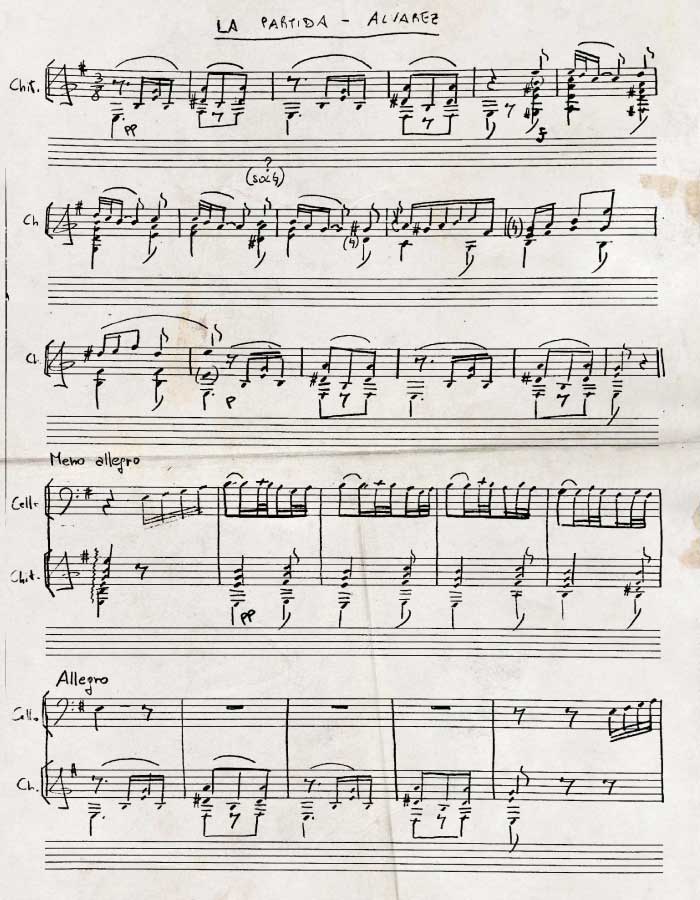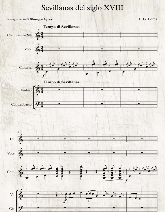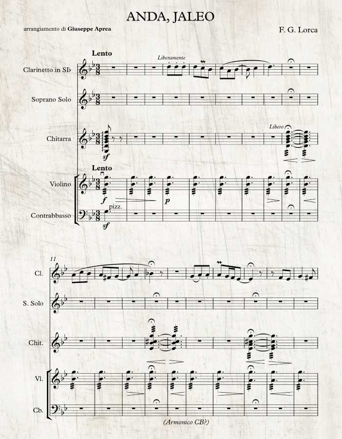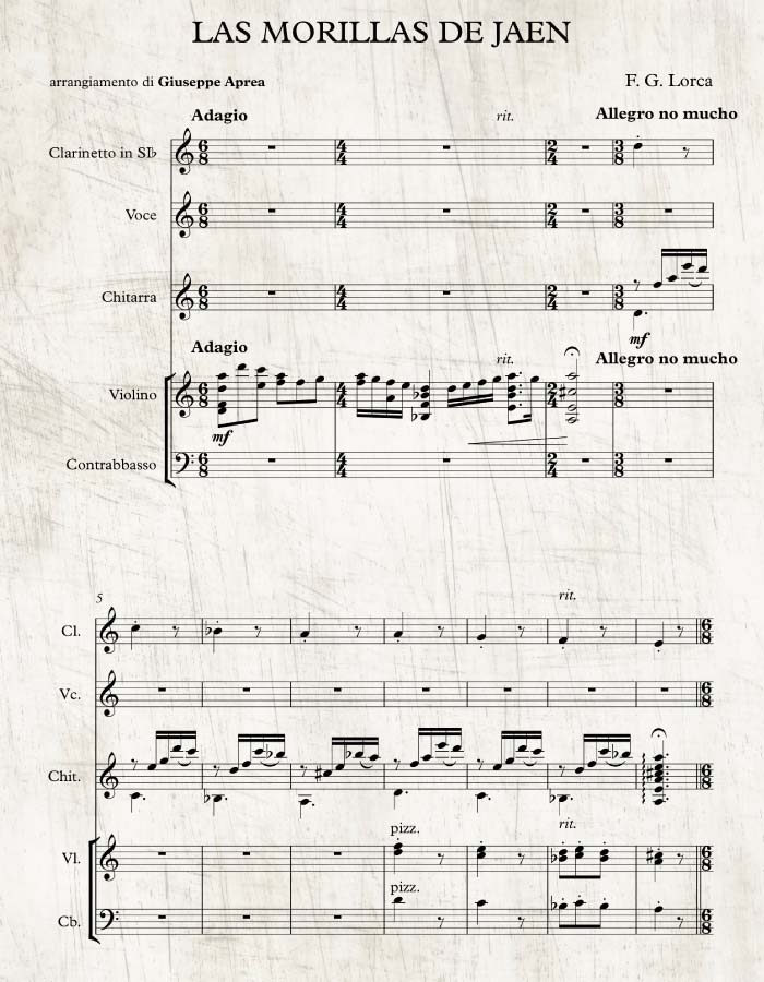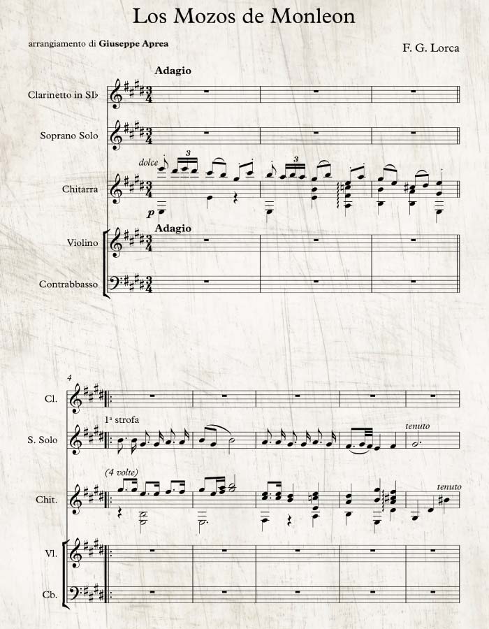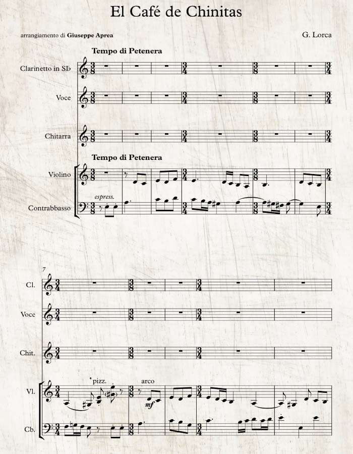 Arrangement for soprano/mezzo, clarinet, guitar, violin, contrabass